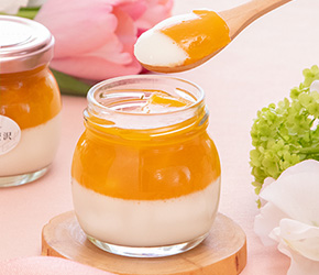 みすみずしく仕上げたくちどけの良い果実感たっぷりのデザート。 皮のほろ苦さと爽やかな柑橘の香りをお楽しみください。