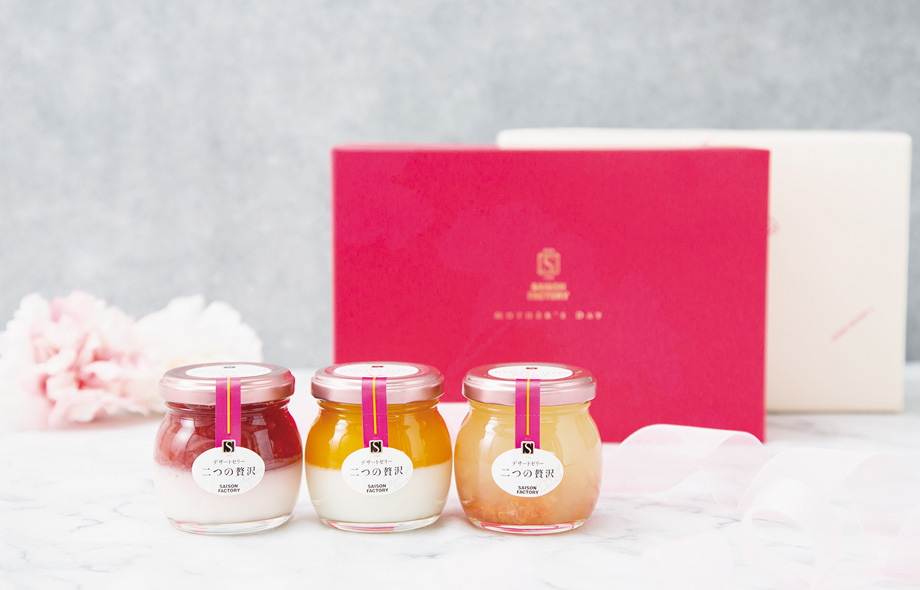 それぞれのフルーツの特徴を活かして作った二層のデザート詰合せ。 スウィーツ好きなお母さんのティータイムが至福のひと時になること間違いなしです!